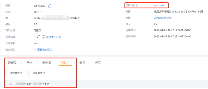 2.购买一台同在“vpc-demo”的ECS,并为其绑定一个弹性公网IP,按需选择带宽,够用就好。