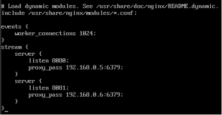 1.Nginx安装后,需要配置请求转发规则,告诉Nginx哪个端口收到的请求,应该转发到后端哪个Redis实例。