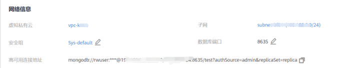 您可以在实例管理页面,单击目标实例,进入基本信息页面。在“网络信息 > 高可用连接地址”获取副本集的连接地址。
