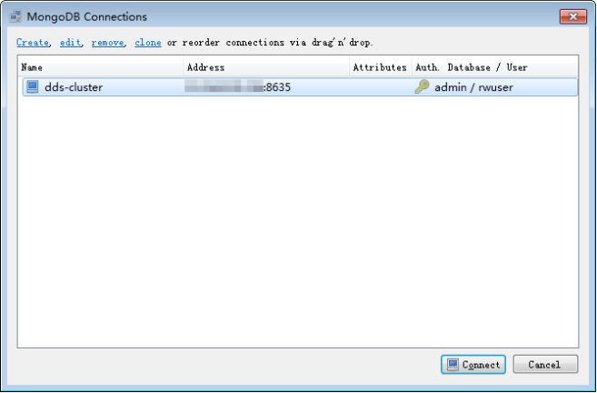 - 若通过界面连接信息连接集群实例,建议使用4.0版本以上的MongoDB客户端。