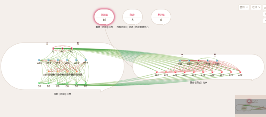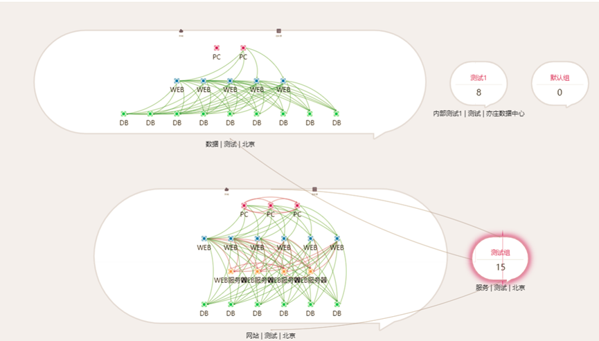 拓扑中每个椭圆形标识代表一个工作组,类似于传统安全中的安全域、业务组等概念。
