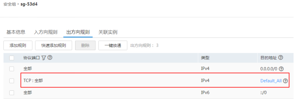 方向 协议端口 目的地址 出方向 全部放通 Default_All