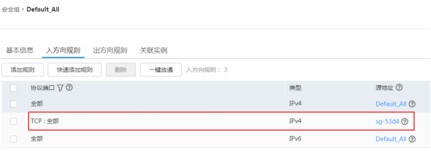 方向 协议端口 源地址 入方向 全部放通 sg-53d4