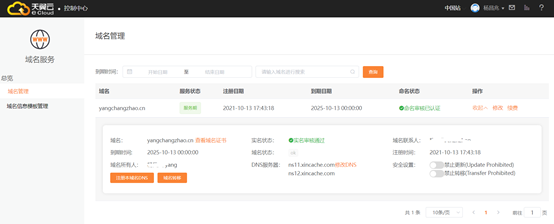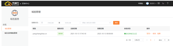 (1)在域名管理界面,点击“管理”