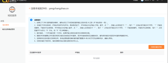 (2)点击“注册本域名DNS”,进入到注册域名DNS界面