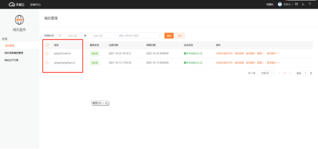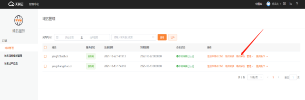 1、在新域名服务产品界面,点击“控制台”,进入到域名管理界面,找到需要解析的域名。