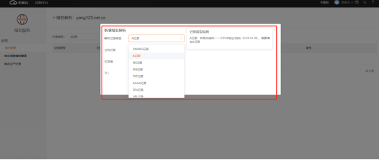 A记录:将域名指向一个IPv4地址(例如:10.10.10.10)需要增加A记录。