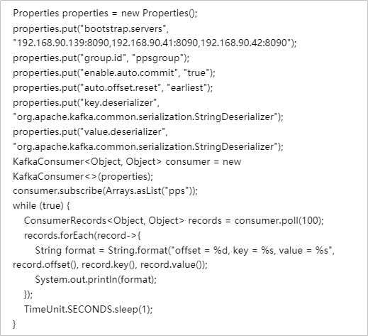 Kafka的消费者示例代码片段如下: