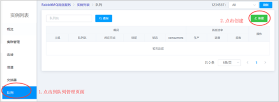 可以在代码中声明,会自动创建队列。也可以进入控制台,在实例列表的队列选项卡进行新建。