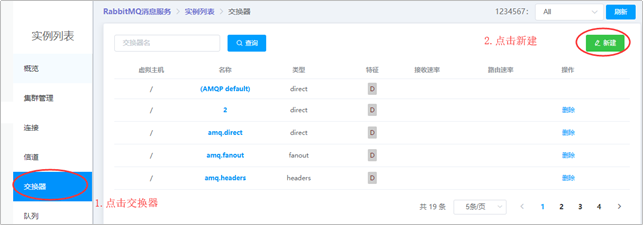 本节介绍了在RabbitMQ实例中如何创建和删除交换器。