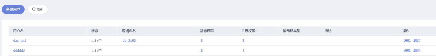 - 单击“新建用户”,进入用户信息编辑页面,填写相应的用户信息,如基本信息、基础权限、扩展权限、逻辑库(可选),并选择读策略类型。