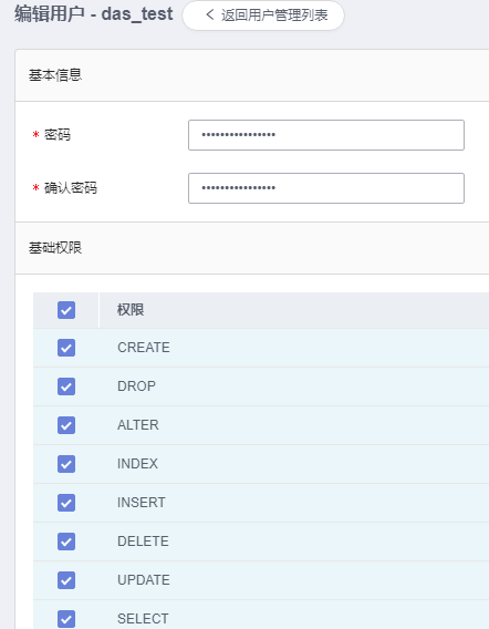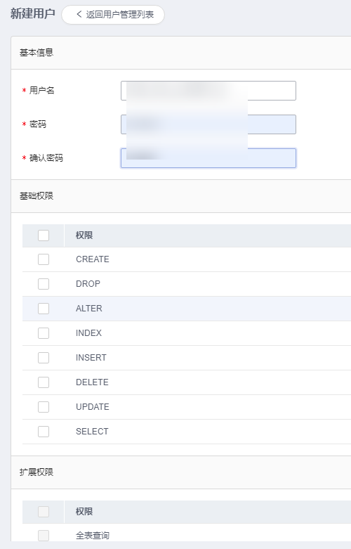 当同一数据库实例或同一数据库需要不同权限的用户访问时,可创建多个用户,但创建的用户权限不能超出该账号所具备的操作权限。