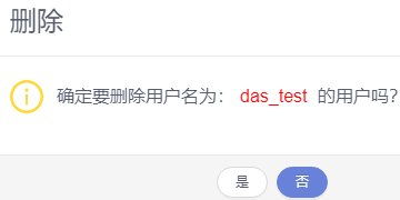 - 在用户管理列表中,选择指定的用户名操作栏中的“删除”,在确认删除用户信息弹出框中,单击“确定”。