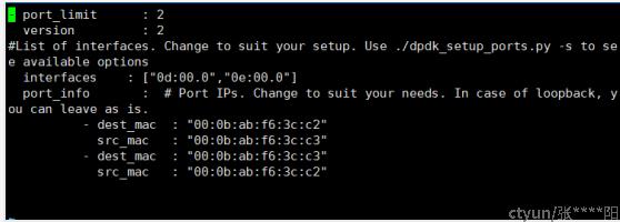 interfaces :{“0d:00.0”,”0e:00.0”} //指定发包和收包的接口(发包器的接口)
