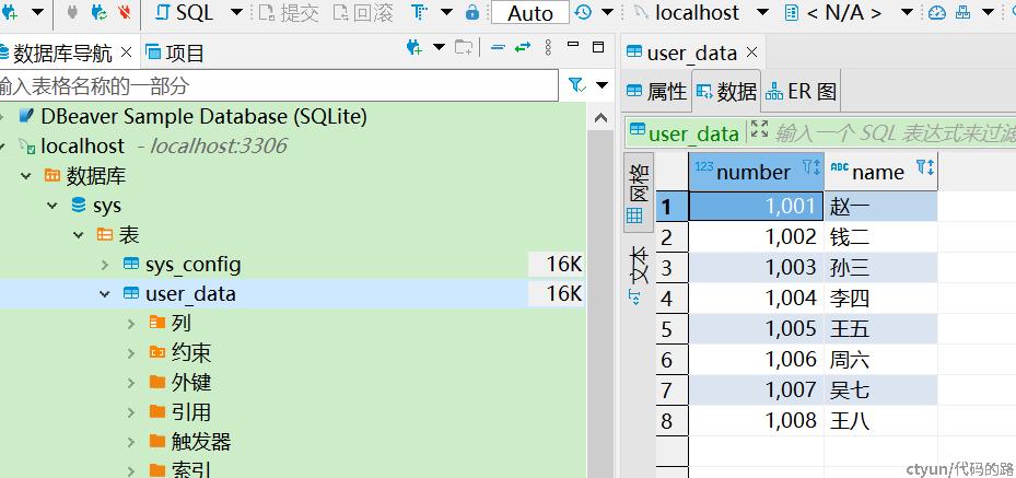 创建本地数据库user_data: