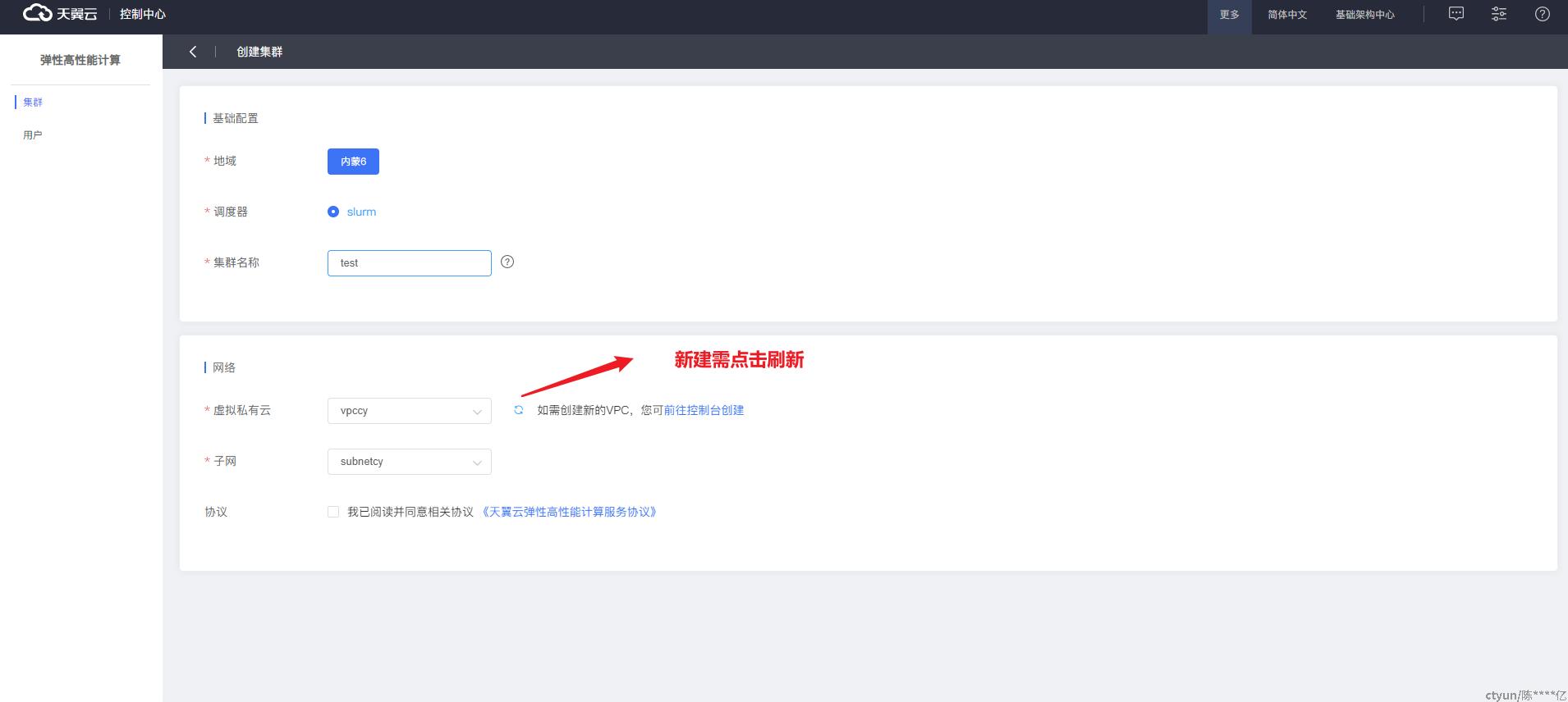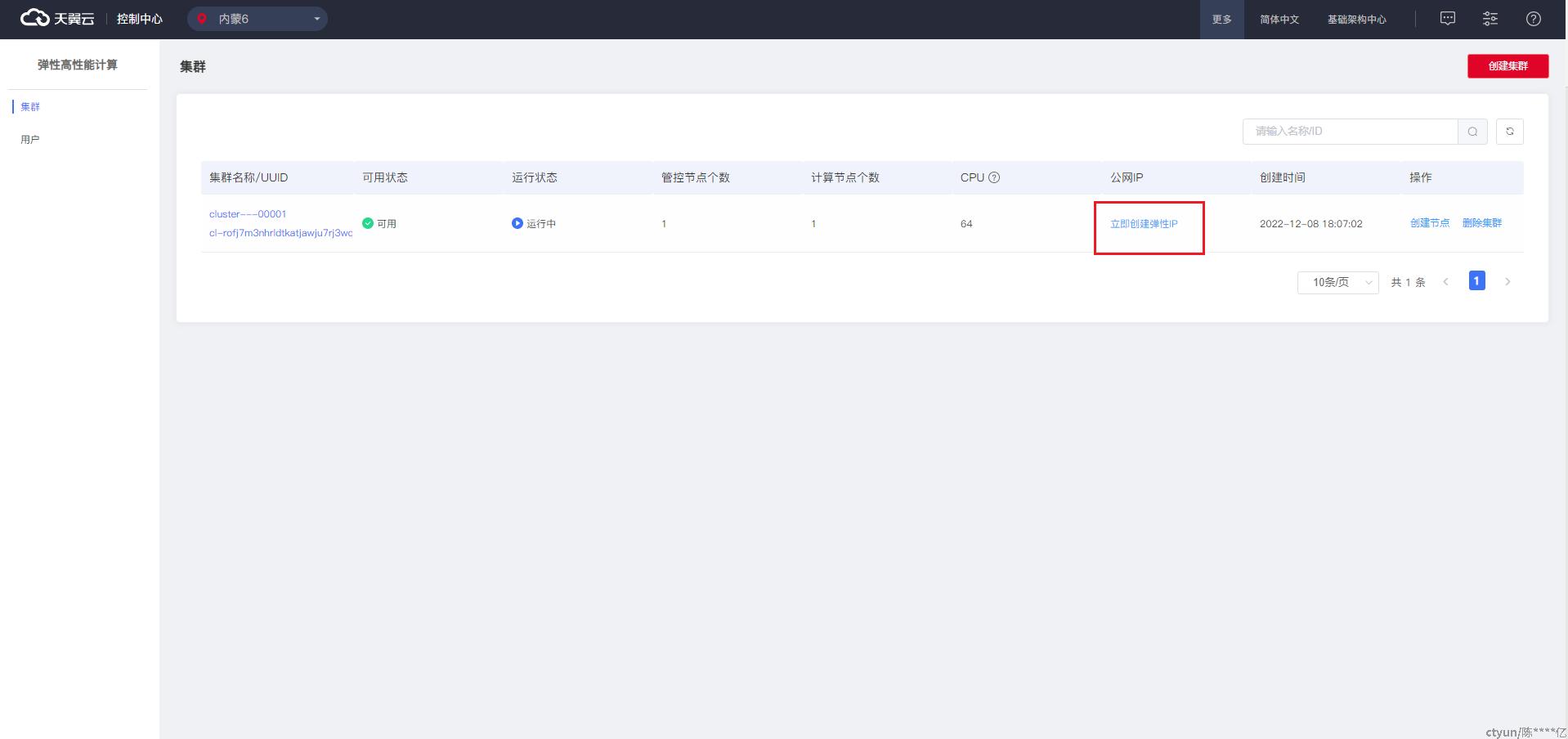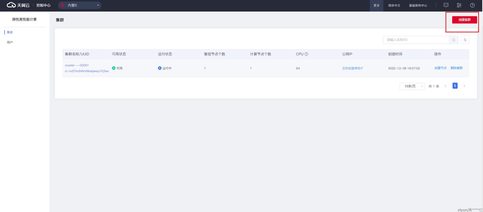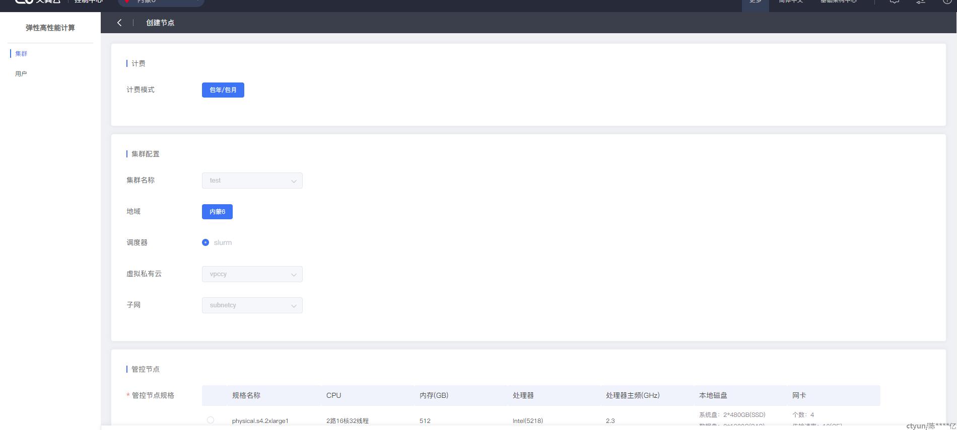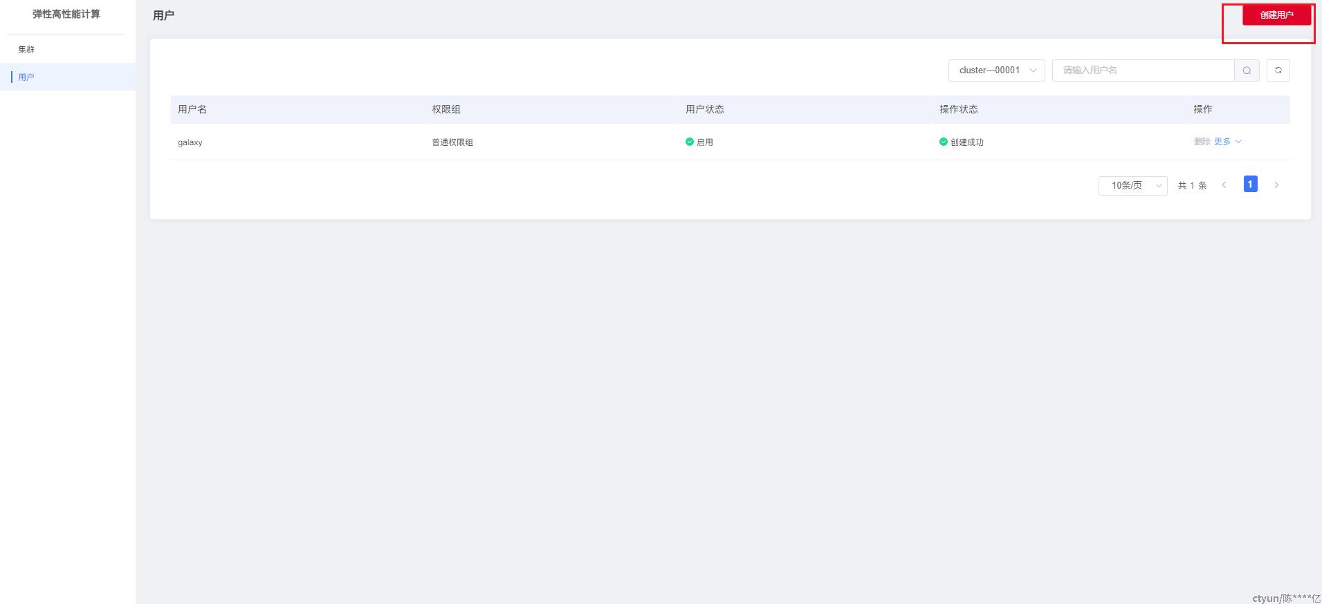 - 通过弹性高性能计算集群控制台-用户-创建用户,创建用户账户,方便科研机构其他人使用