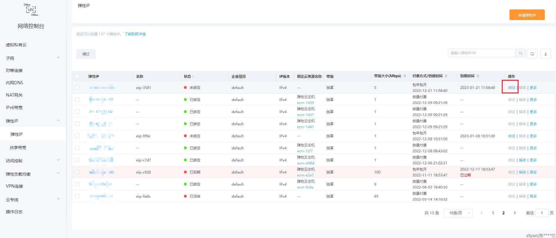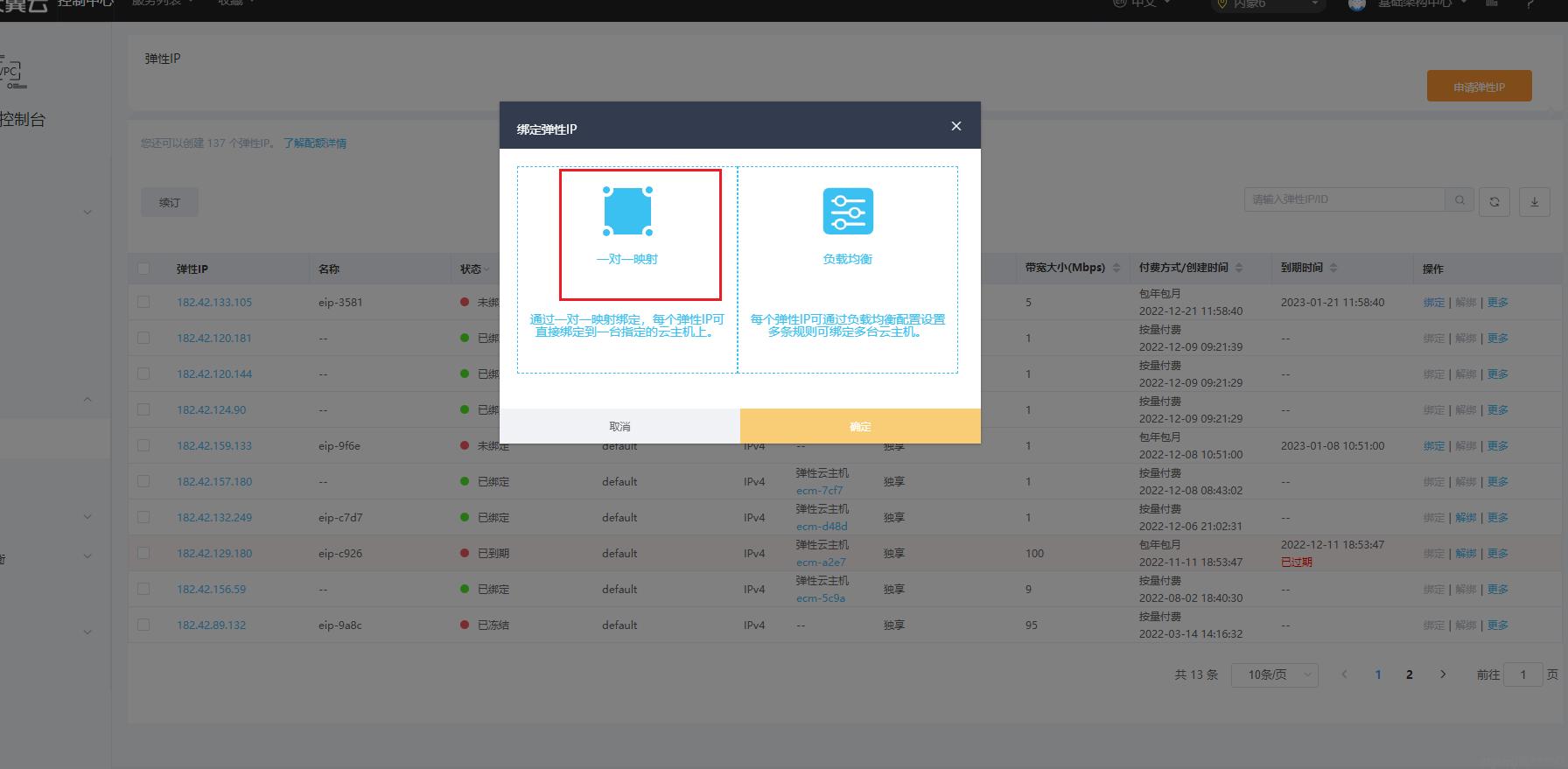 创建完成后通过绑定按钮,绑定到对应的管控节点