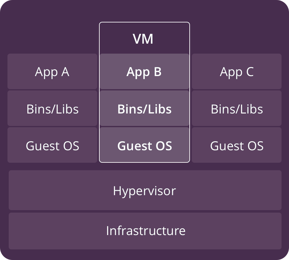 - 当您需要在服务器上运行多个应用程序或需要管理多种操作系统时,VM是运行需要所有操作系统资源和应用程序的更好选择。