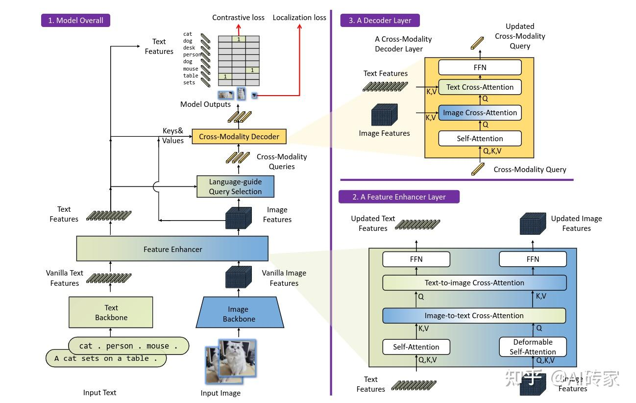 - Grounding DINO采用预训练的DINO和CLIP模型作为视觉-语言基础,从海量的图文数据中学习到了丰富的视觉和语义表征。这为后续的开集目标检测任务提供了强大的知识基础和特征表示。