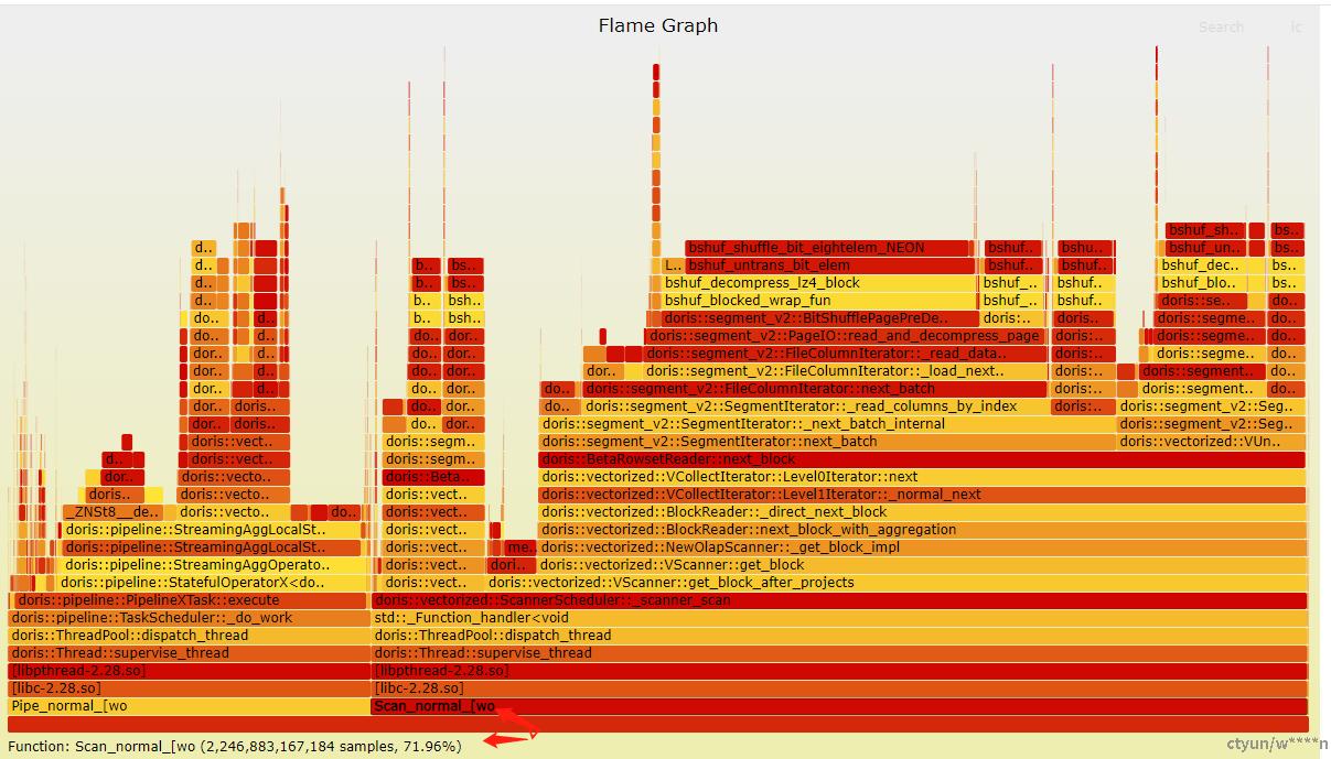 举个例子:点击Scan_nromal, 显示它占比71.96%, 通过对比doris be代码, 确认操作为扫描数据。