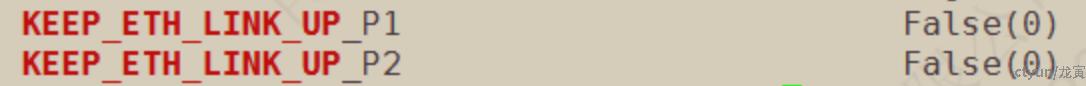 查看 pf 配置,如下所示,可以看到这两个配置已经配置了 false。即软件层面 down 掉接口会触发硬件层面也 down 掉链路,这是针对 pf 的配置,vf 没有这类配置。所以软件层面进行 link-down 时,pf 层面会断流,但是 vf 层面不会断流。不断流此时就会有问题,导致重启过程中会重置硬件默认规则,此时 vf 恰好在收包时,就会有这样的情况出现。