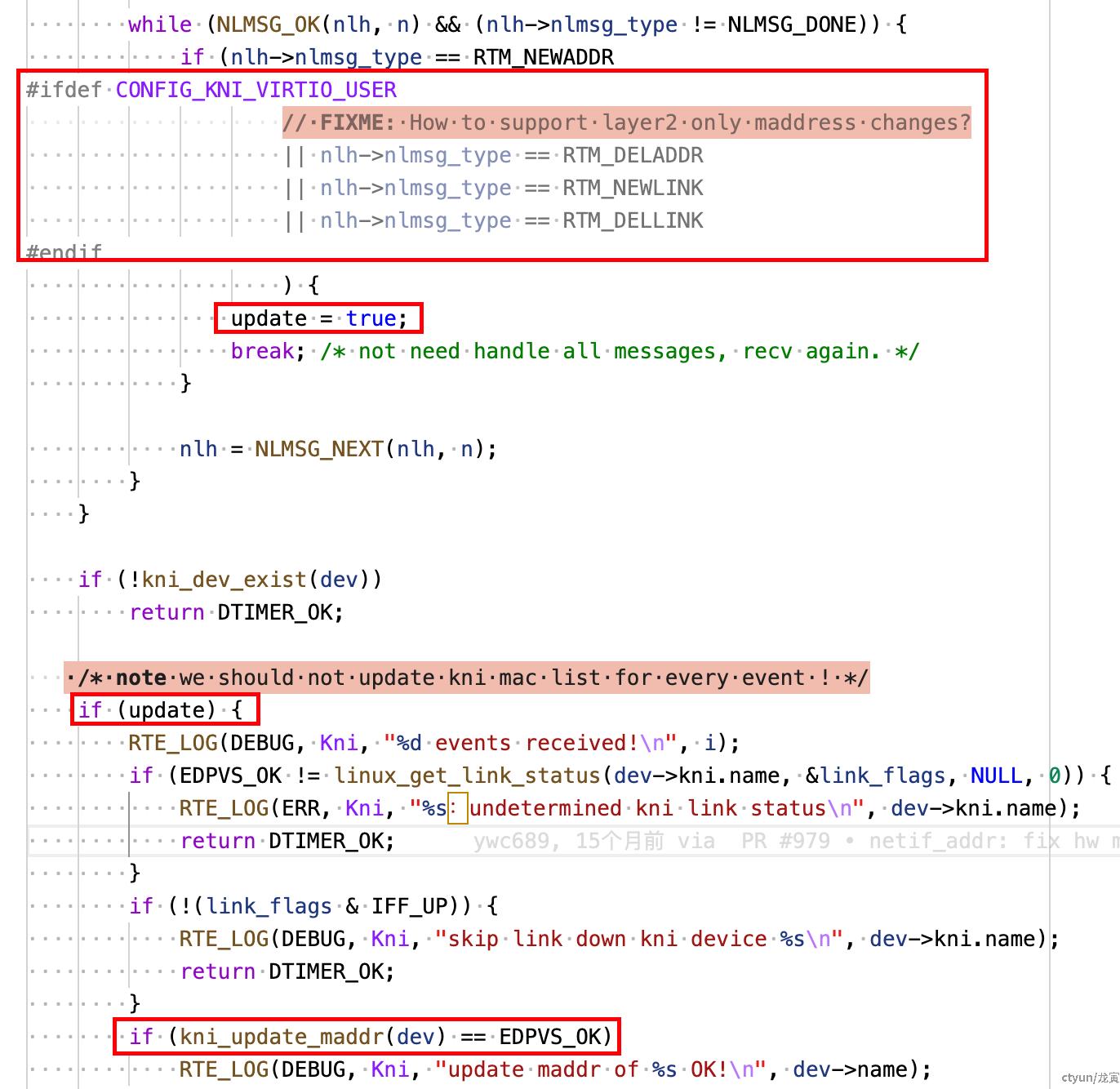 进一步分析代码 kni_update_maddr 代码,调用栈如下: