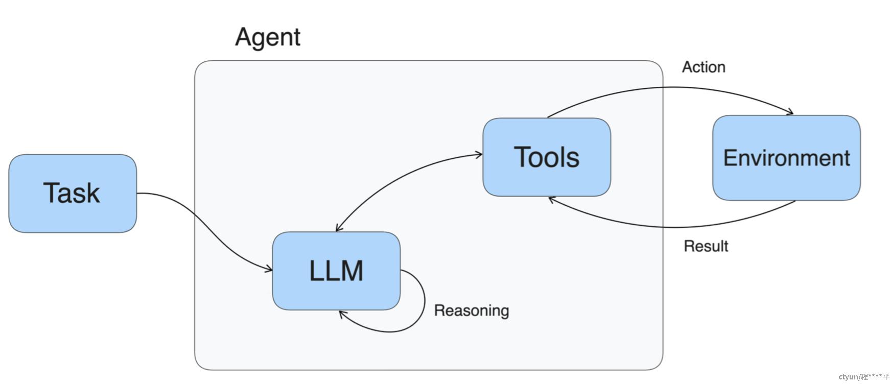 LLM(语言模型):代理的“大脑”,负责思考、推理、生成计划,作用是接收用户输入 → 理解问题 → 输出“下一步要做什么”(如调用哪个工具或直接回答)
