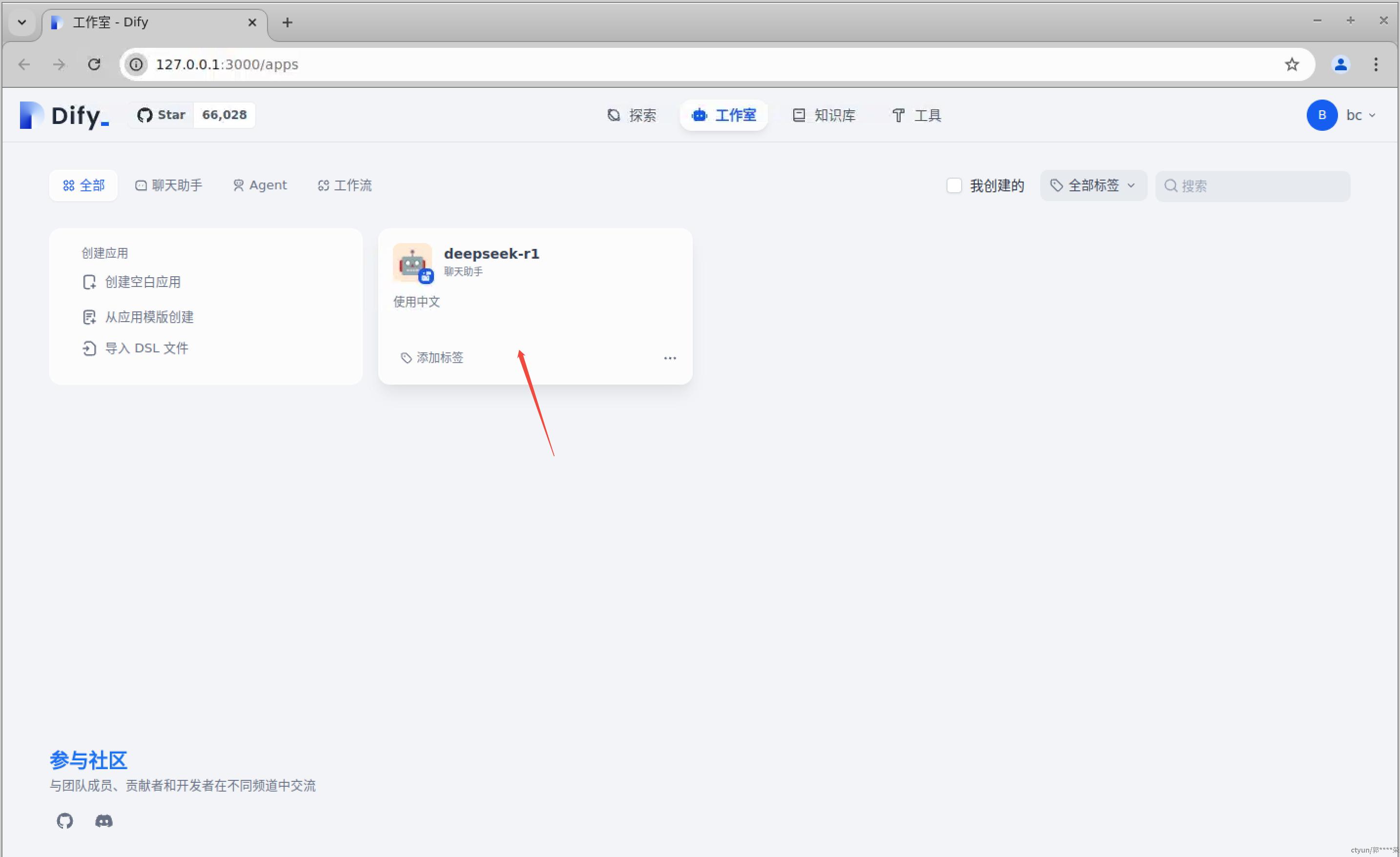 当前在科研助手的社区镜像中,我们已经为您提前部署好了基于 Dify 搭建的DeepSeek-R1:7B模型,方便您即刻体验,开箱即用。