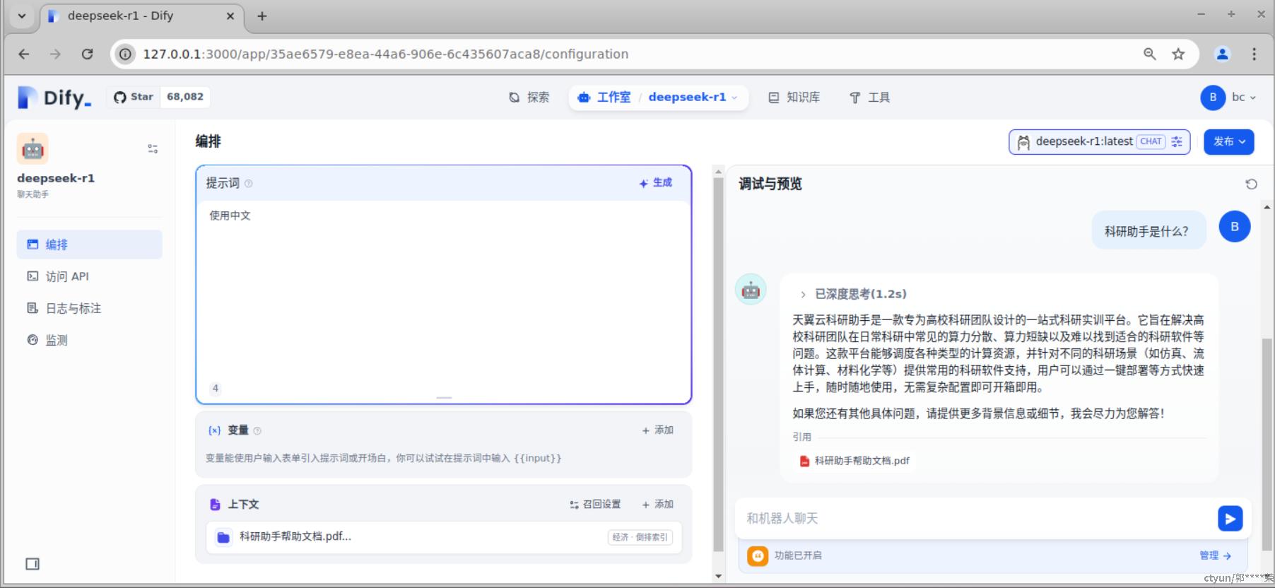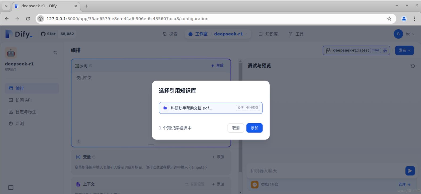 在科研助手开发机中通过Dify使用DeepSeek模型搭建知识库