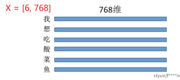 输入的特征维度也为768,即:每个字用768维来进行表示,如图所示: