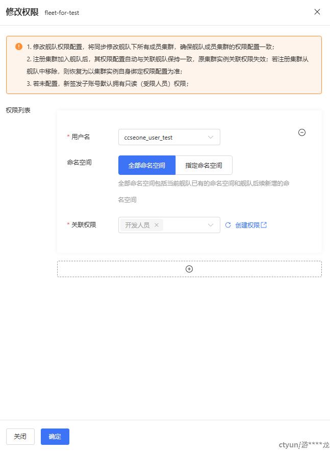 在上述步骤中,租户管理员向行政管理人员分配「ccseone-admin」权限。此权限允许行政管理人员创建注册集群、舰队和联邦等资源,从而利用分布式容器云平台搭建其基础设施。若需批量管理注册集群的权限,可将目标注册集群加入舰队,然后为相应的舰队成员用户赋予权限,实现统一管控。