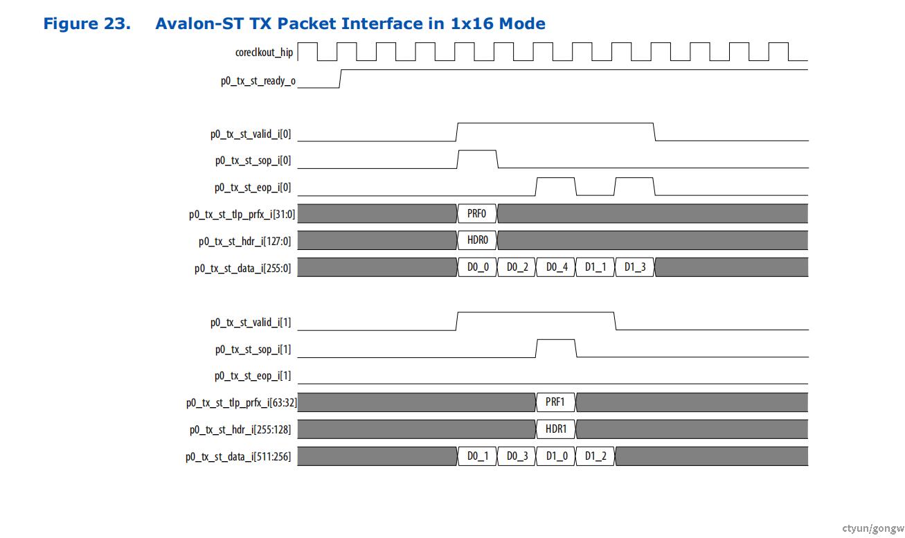 其中hdr和data在x16lane模式下,可以包含2个segment。需要自己在FPGA代码中对2个segment的valid添加逻辑号。