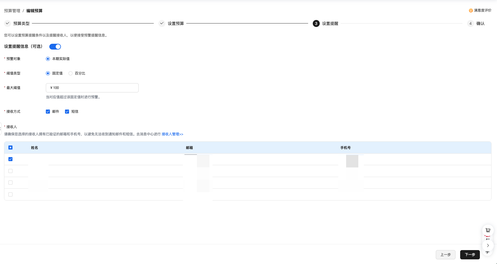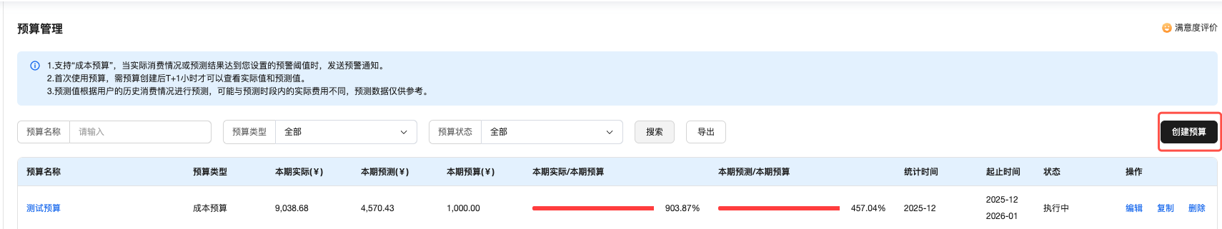 在预算管理页面,可以创建或编辑预算。