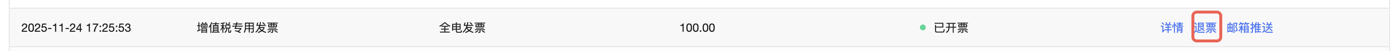 当您发现已开具的发票存在信息错误、发票类型选择错误等问题时,可以参考本文档进行退票处理,然后重新申请开具发票。