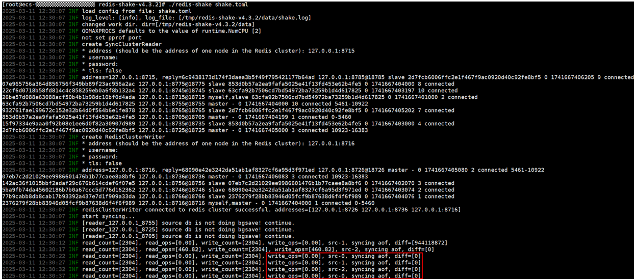 使用如下命令同步源Redis集群和目标Redis集群数据: