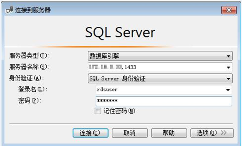 “登录名”即待访问的关系型数据库账号,默认管理员账号为rdsuser。