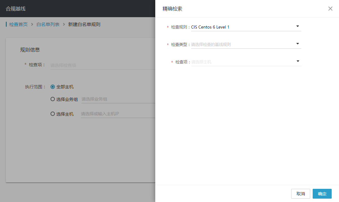 2.点击“精确搜索”,联动选择检查规则-检查类型-检查项。