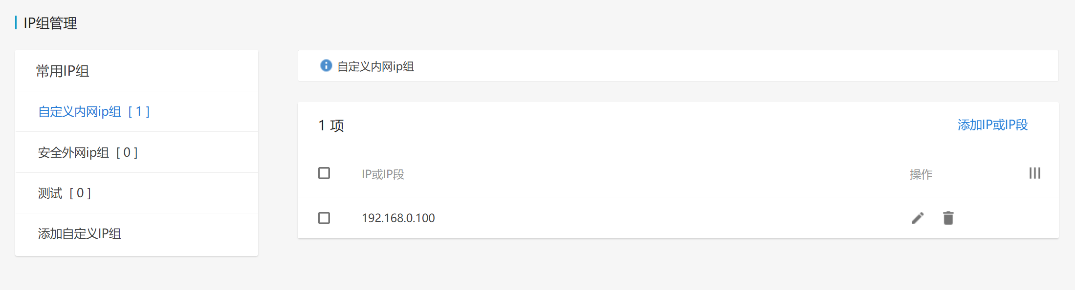 分组内已添加的 IP 或 IP 段,希望对其进行编辑或删除,可点击操作。