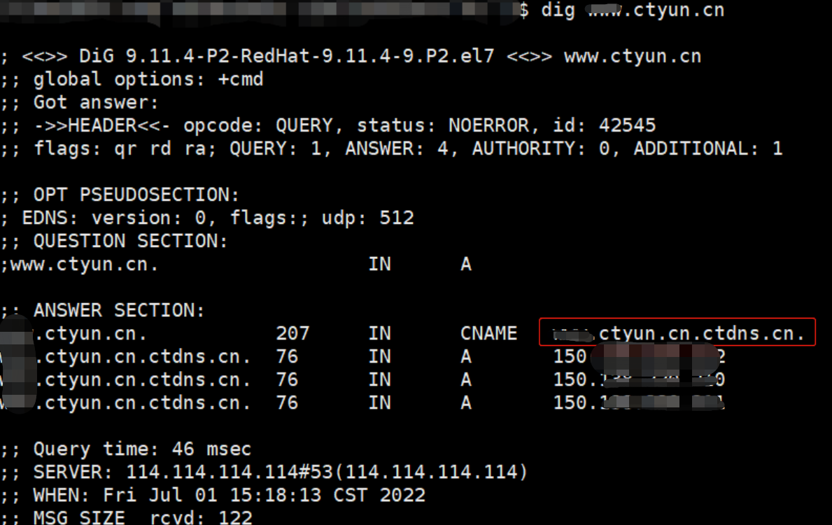 - 验证CNAME服务是否生效。配置CNAME后,不同的服务商CNAME生效的时间也不同,一般新增的CNAME记录会立即生效,修改的CNAME记录需要较长时间生效。您可以 ping 或 dig 您所添加的加速域名,如果被指向.ctdns.cn,即表示CNAME配置已经生效,视频直播功能也已生效。