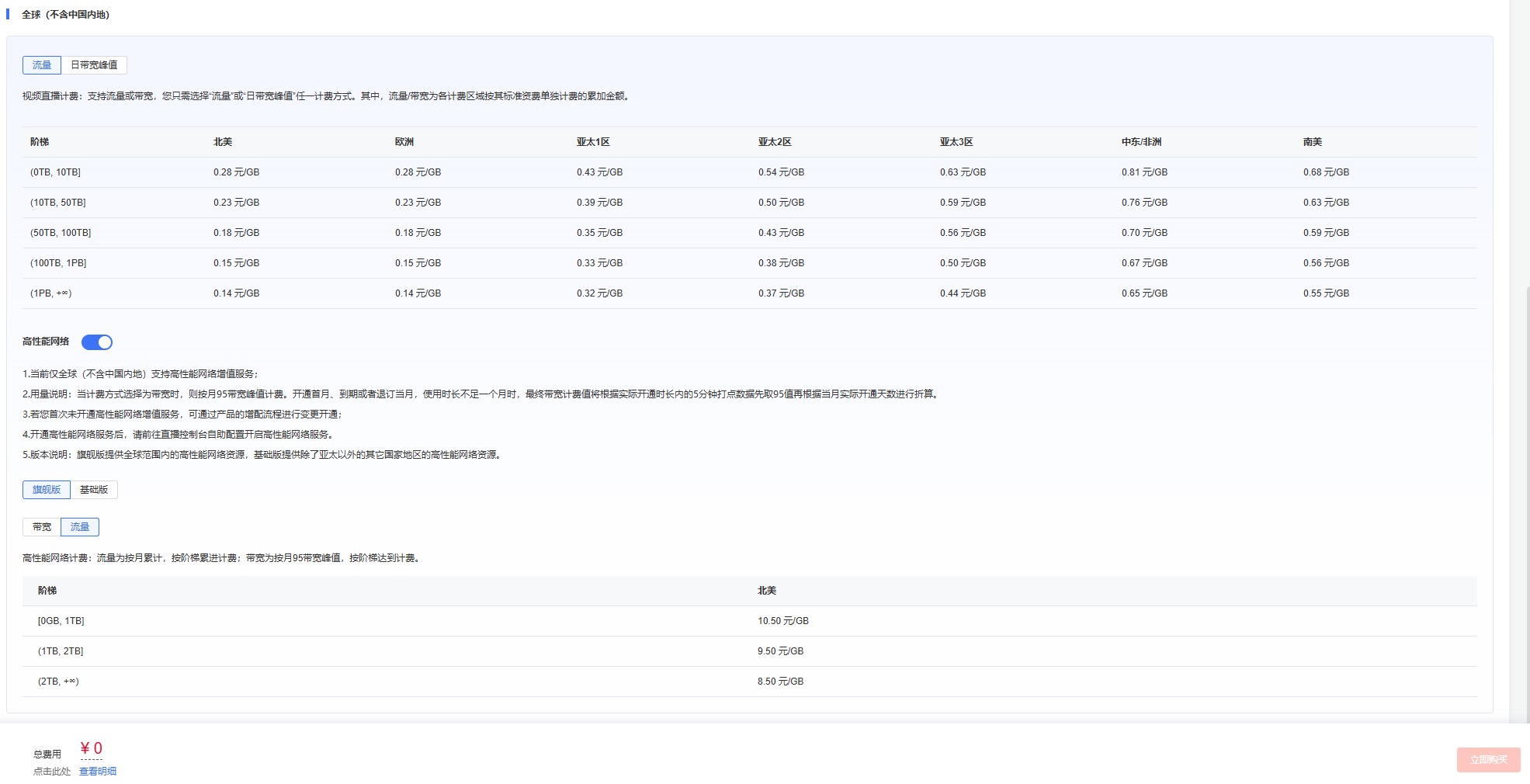 开通高性能网络增值服务前,需先开通视频直播加速中国内地和全球(不含中国内地)服务。