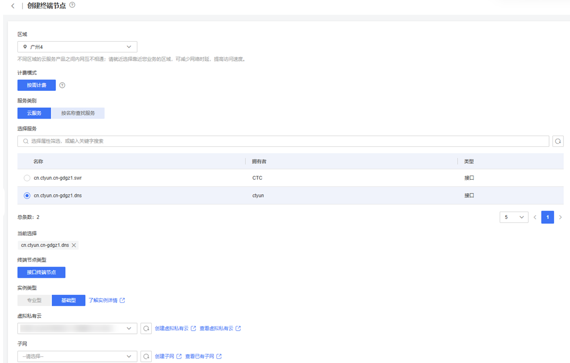 此处选择DNS服务实例,如“cn.ctyun.cn-gdgz1.dns”。