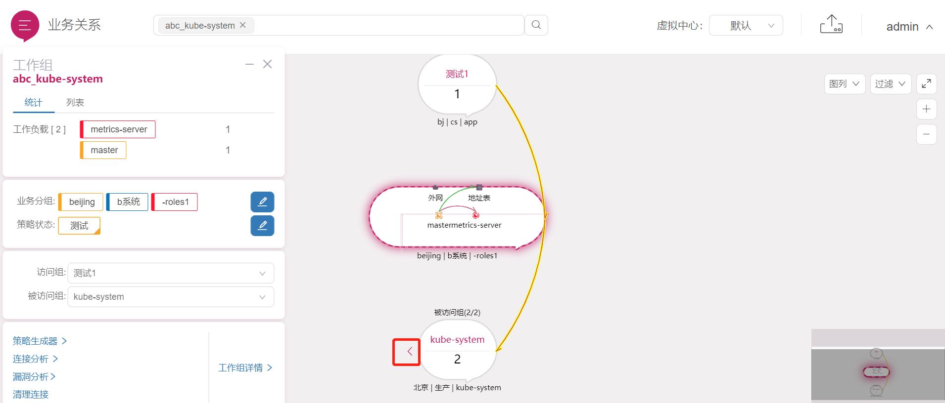 1.按照页面中的提示,选择一个工作组,可以看出该工作组中的工作负载的访问情况和被访问情况。