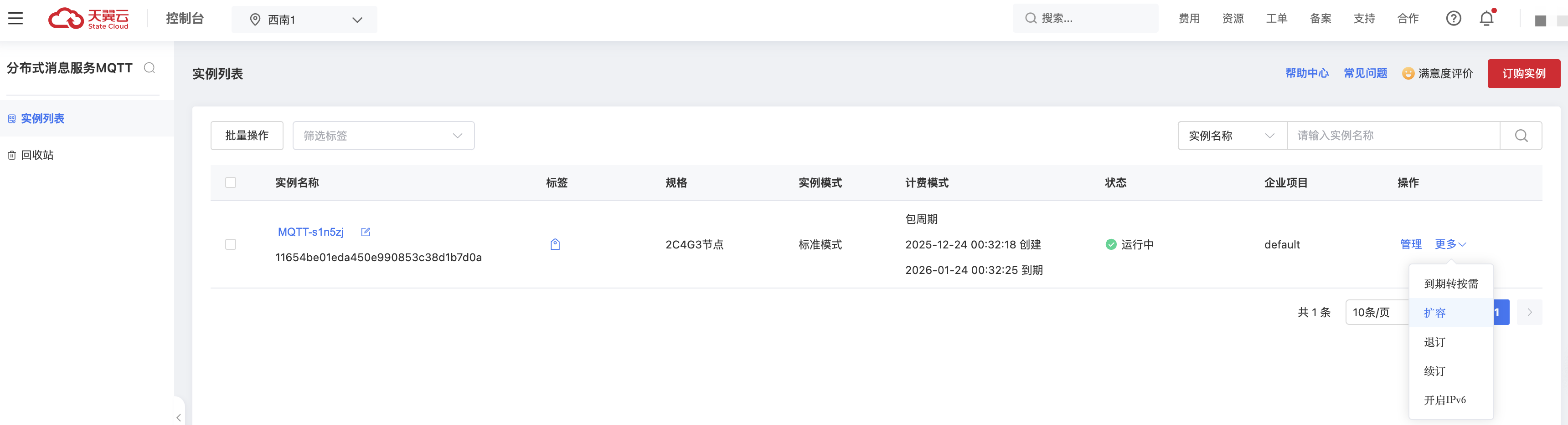 1、登录分布式消息服务MQTT控制台,可以看到当前租户下面的实例列表。