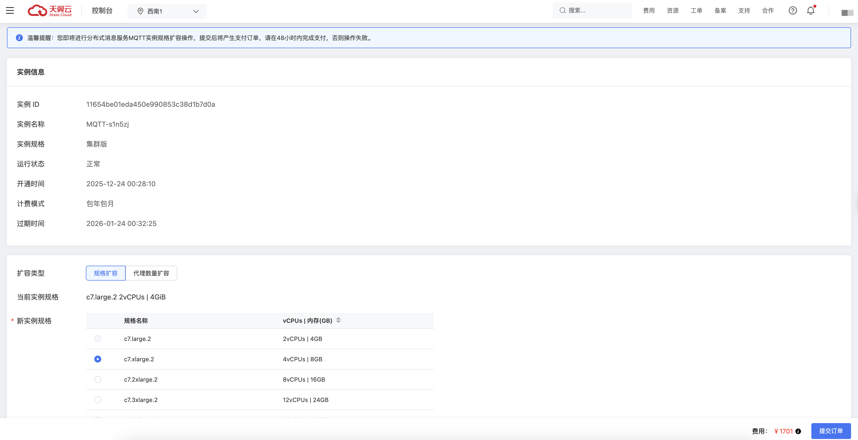 规格扩容:指通过增加MQTT的资源配置来提升系统的处理能力和性能。