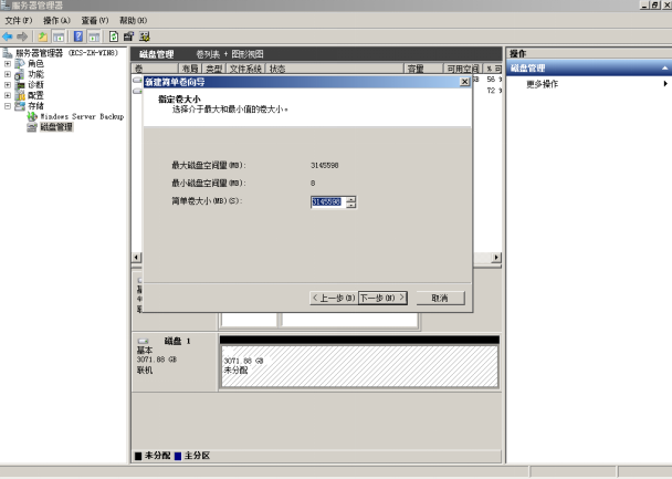 本文以云主机的操作系统为“Windows Server 2008 R2 Standard 64bit”、磁盘容量为3 TB举例,提供容量大于2 TB的Windows数据盘的初始化操作指导。
