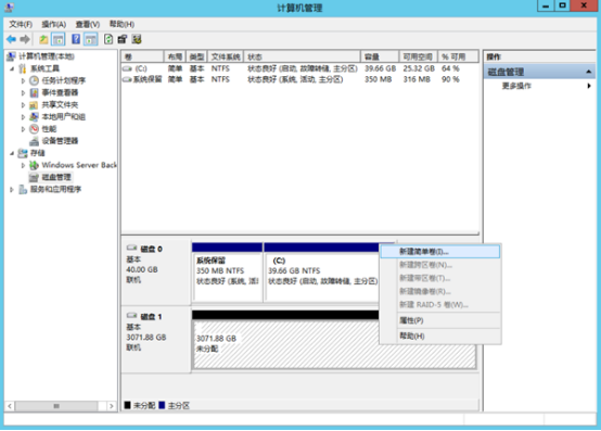 本文以云主机的操作系统为“Windows Server 2012 R2 Standard 64bit”、磁盘容量为3 TB举例,提供容量大于2 TB的Windows数据盘的初始化操作指导。