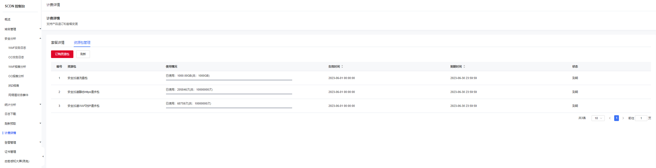 1.订购安全加速产品后,可支持订购安全加速的资源包,并根据所开功能对资源包进行抵扣。