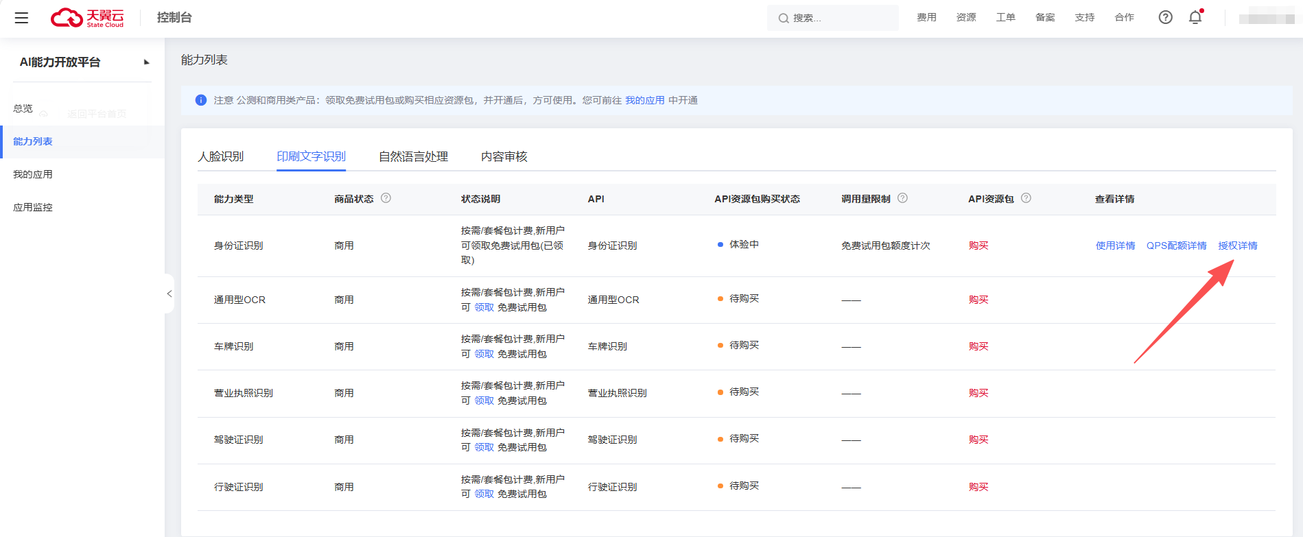 授权详情功能,授权后可以在产品控制台的授权详情中查看。