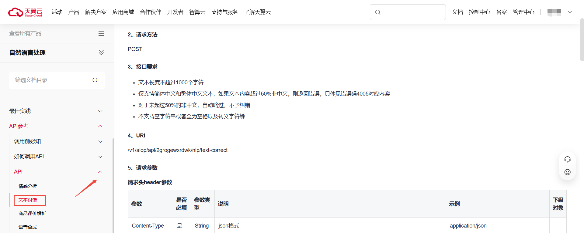 点击【产品文档】,跳转到对应的产品文档,文档中心的【API参考】章节介绍了API调用的相关说明。