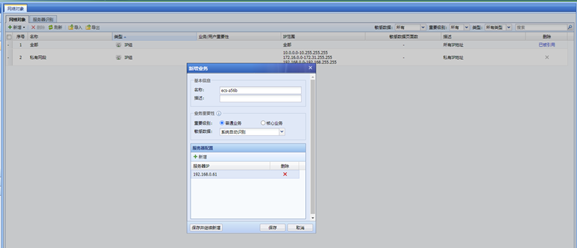 根据互联网业务的需要,需为每个业务云主机创建网络对象,从【导航菜单】页面中,点击『对象』→『网络对象』→『新增』→『业务』,进行相关配置。